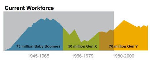 Generation Y is the fastest growing segment of the workforce, growing from 14% to 21% over the past four years. Most Baby Boomers will phase out of the workforce in the next 10 to 20 years and Generation Y will rapidly assume the place of the Baby Boomers.